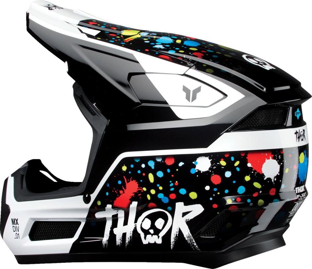 Youth Fleet Splat HelmetStrong and durable PC/ABS shell Energy Reduction Technology (ERT) helps to mitigate linear and rotational impact energy Premium dual-density EPS impact liner Nine intake / exhaust vent ports Flexible polyamide visor with 4-point snap-retention attachment Removable and washable comfort liner and cheek pads Nylon chinstrap with stainless steel D-ring retention system and snap secure feature