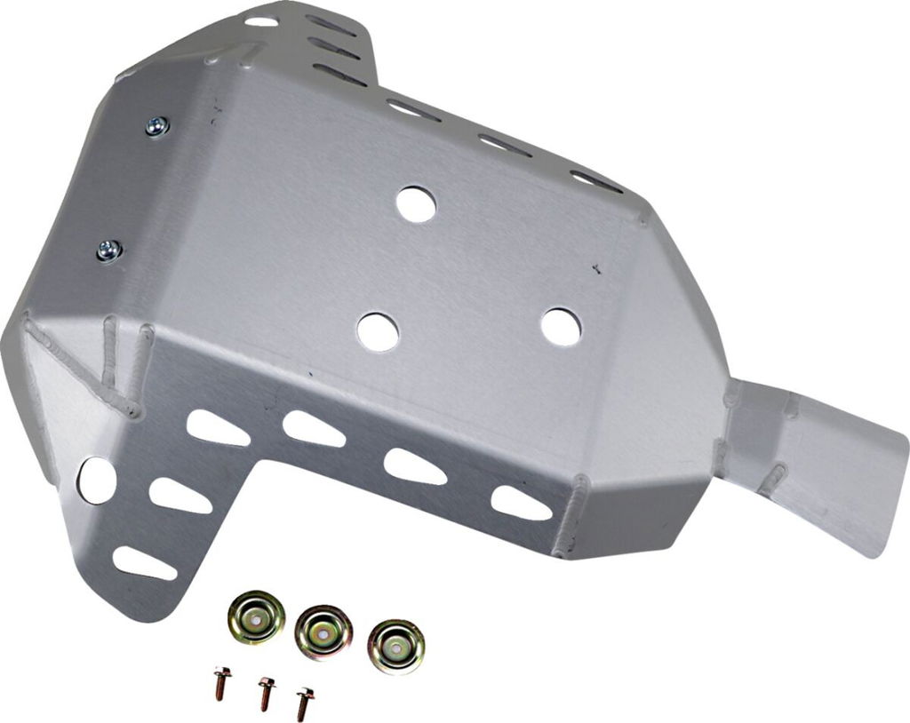 Aluminum Skid PlateProtects vital engine parts and cases from rocks and debris Clear anodized for corrosion protection and good looks Skid plates made from 3/16" 5052 H-32 aluminum Smooth underside won't snag when crossing logs Oil drain hole on all required models Heat-treated chromoly steel clamps keep plates mounted securely All mounting hardware included Made in the USA