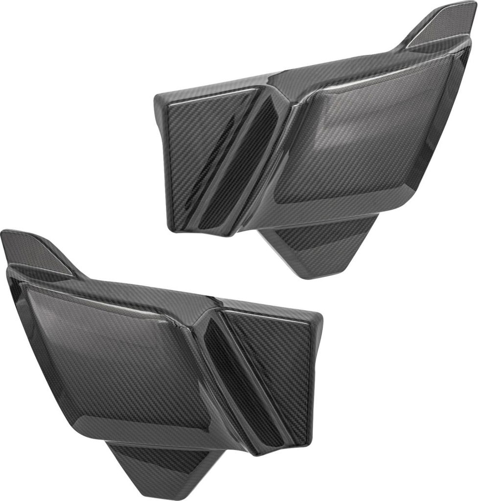 Carbon Fiber Side CoversMade from premium pre-preg carbon fiber Smooth, flowing design blends seamlessly into saddlebags for a clean, custom look Side covers flow into saddlebags which eliminates the gap between side cover and bag for reduced wind turbulence Direct bolt-on installation, with no modifications required Finished in a high-gloss, UV-resistant clear coat