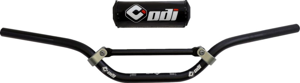 PeeWee HandlebarBuilt for PeeWee 50 models with 3/4” diameter handlebars Specifically designed for riders looking for a taller bar more aggressive bar with less sweep for racing Constructed of durable 7075 heat treated alloy Solid ODI Crossbar for improved strength Knurled left slide improves grip-to-bar adhesion Laser Etched ODI graphics