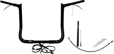 EZ Install Wired 1-1/4" Pointed Top Handlebar KitWired for your handlebar controls, including a throttle-by-wire sensor installed Remove the bars from the box and plug them into your motorcycle No more need to fight internal wiring with our handlebars: you can install wiring in minutes Non welded top corner is machined from billet steel with a smooth internal wire cavity that won't damage the internal wiring CNC mandrel bent from 1-1/4" Dia. x .120" wall heavy tube Bolt-together, 2-piece handlebar takes up half the shelf space Made in the U.S.A. Does not replace existing lines and cables, but extends them. Accepts OEM heated grips. Heated Grip Extension sold separately. All '21-'23 kits will include black brake lines and black clutch extensions.