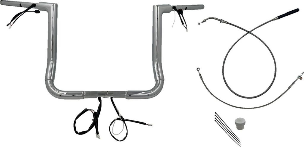 1-1/2" EZ Install Flat Top HandlebarBolt-together, two-piece handlebar that takes up half the shelf space and is easy to ship CNC mandrel-bent from 1-1/2” diameter x .095” wall heavy tube Adjustable 1-1/2" collar next to handlebar controls for a custom finished look EZ install means no more need to fight internal wiring; install wiring in minutes Knurled and notched for TBW applications Made in the USA Accepts OEM heated grips. Includes matching brake line/cable extensions.