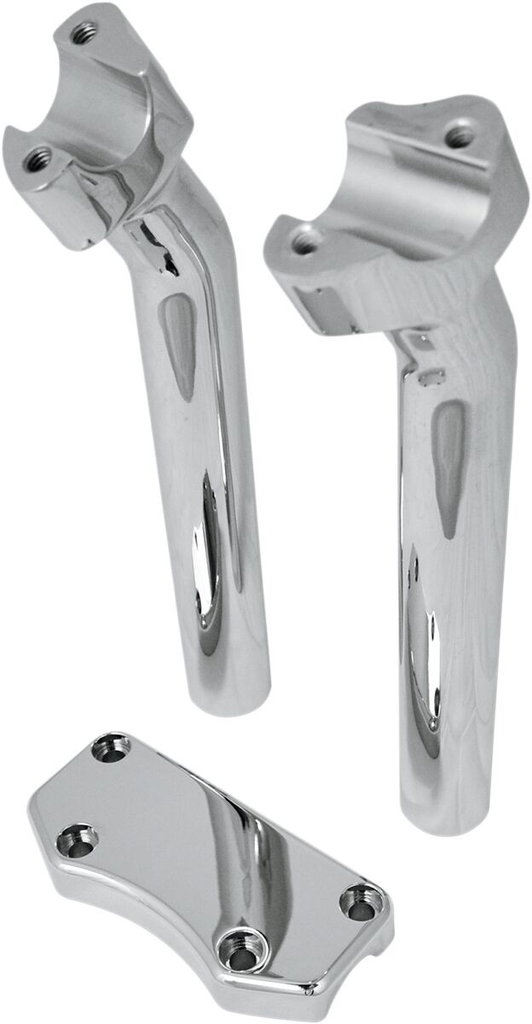 Handlebar Riser & Top Clamp KitSold as a kit of two risers, one-piece top clamp and all necessary hardware Tapped for 1/2"-13 bolts Made in the USA
