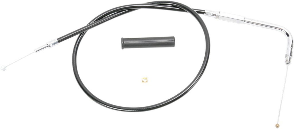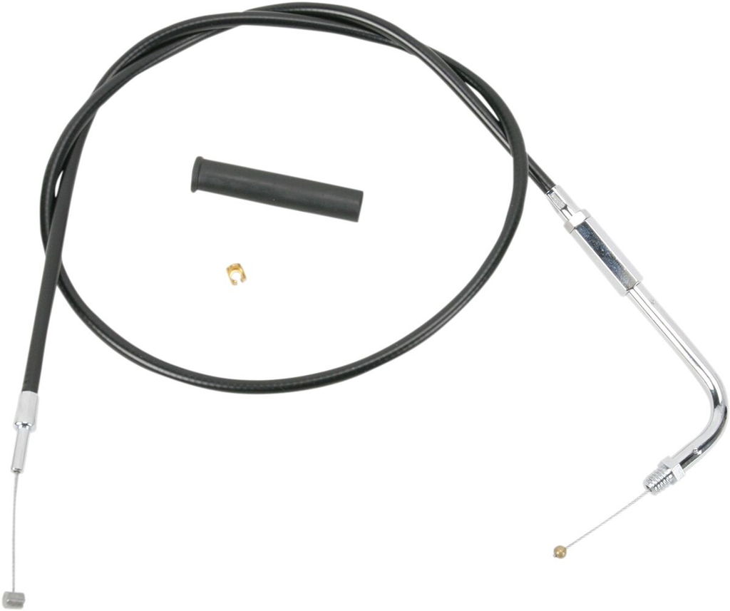 Black Vinyl Throttle/Idle CableCables feature polished-chrome fittings, black vinyl outer casings, tempered-steel inner conduit and an inner nylon liner for smooth operation and long life Length given is the length of the outer housing only, excluding the elbow. Cables will also fit late-style Mikuni carbs.