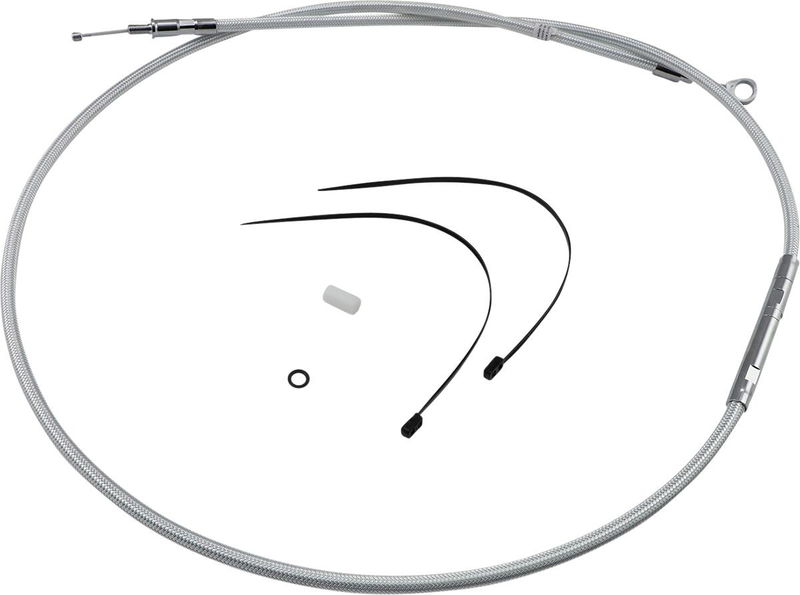 High-Efficiency Braided Sterling Chromite II® Clutch CableSterling Chromite® II uses patented technology to look like chrome Braid color and weave match on all Magnum control cables and brake lines Coated with a non-yellowing, crystal clear FEP fluoropolymer outer jacket for exceptional protection against scuffing paint or chrome Low-effort, high-efficiency cable design meets or exceeds all OE specifications for fitment, construction, and endurance All fittings are polished and chrome plated Attractive adjuster with integrated water resistant seals does not require a boot Rubber seal in transmission fitting eliminates fluid leaks All cables are factory lubricated for smooth, consistent, long-lasting operation Assembled in the USA Late style cables are measured with the adjuster completely collapsed. Check torque spec on transmission fitting when installing.