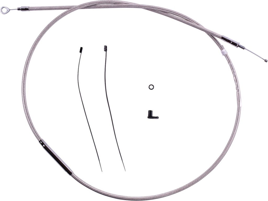 Redesigned Polished Stainless Clutch CablePolished stainless steel braid is brighter than standard stainless Braid color and weave matches on all Magnum control cables and brake lines Chrome adjuster with integrated cover contains water-resistant seals for the best in appearance and performance Coated with a non-yellowing, crystal clear FEP fluoropolymer outer jacket for exceptional protection against scuffing paint or chrome Rubber seal in transmission fitting eliminates fluid leaks All fittings are polished Low effort, high efficiency cable design meets or exceeds all OE specifications for fitment, construction, and endurance All cables are made with anti-friction inner liners, nylon adjuster inserts, and are factory lubricated for smooth, consistent, long-lasting operation Assembled in the USA Late style cables are measured with the adjuster completely collapsed. Check torque spec on transmission fitting when installing.