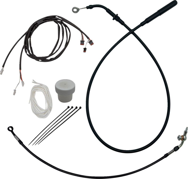 EZ Install KitIncludes all of the necessary components needed to install handlebars based on your model of motorcycle and height of handlebar Installs without removing the exhaust and draining the transmission oil New cable adjuster placement next to clutch lever (no tools needed to adjust) Removes and replaces the OEM plastic tubes, connector & adjuster Allows you to bleed the ABS without using a computer, reducing install time Made in the USA Items included in this kit: EZ install brake line extension EZ install upper clutch cable Wire extensions (3 piece kit to lengthen OEM handlebar switches & TBW sensor, if necessary) Ropes Zip ties Lube