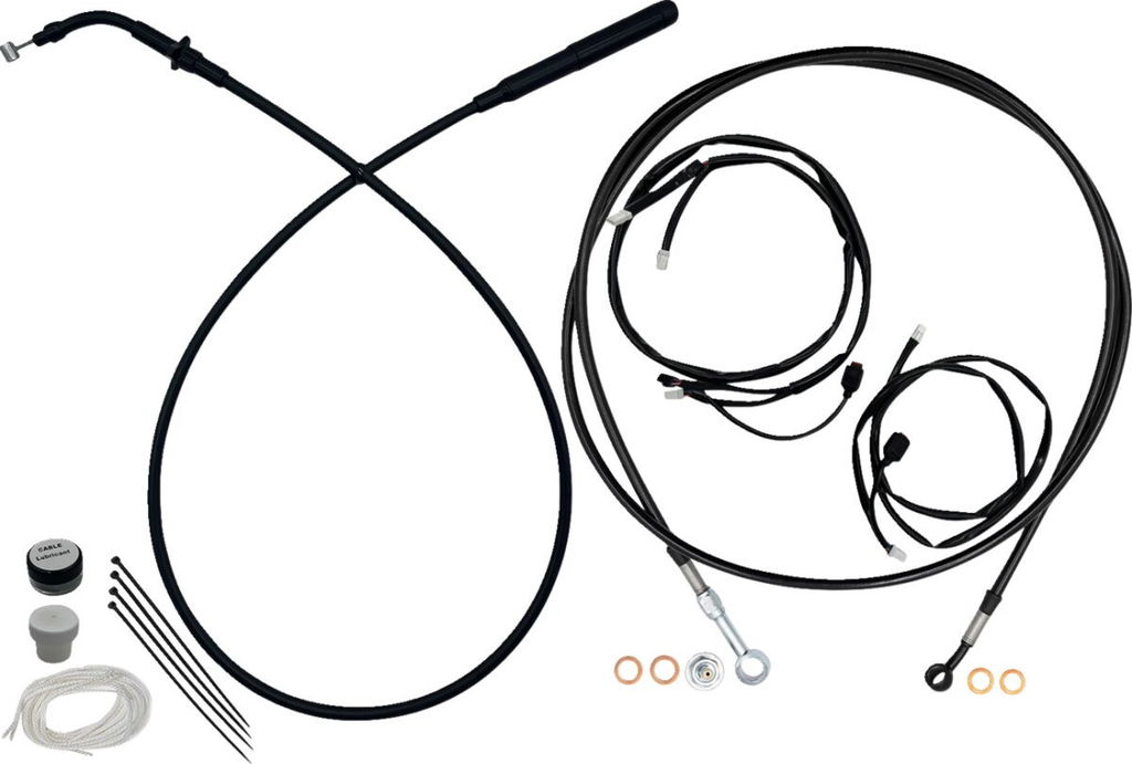 EZ Install KitIncludes all of the necessary components needed to install handlebars based on your model of motorcycle and height of handlebar Installs without removing the exhaust and draining the transmission oil New cable adjuster placement next to clutch lever (no tools needed to adjust) Removes and replaces the OEM plastic tubes, connector & adjuster Allows you to bleed the ABS without using a computer, reducing install time Made in the USA Items included in this kit: EZ install brake line extension EZ install upper clutch cable Wire extensions (3 piece kit to lengthen OEM handlebar switches & TBW sensor, if necessary) Ropes Zip ties Lube