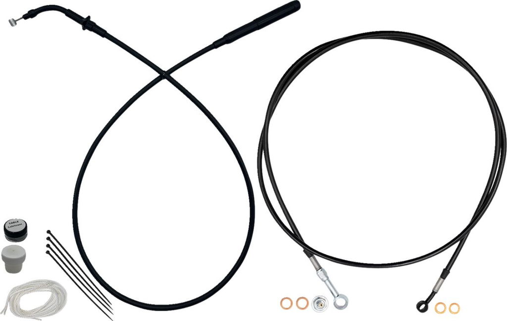 EZ Install KitIncludes all of the necessary components needed to install handlebars based on your model of motorcycle and height of handlebar Installs without removing the exhaust and draining the transmission oil New cable adjuster placement next to clutch lever (no tools needed to adjust) Removes and replaces the OEM plastic tubes, connector & adjuster Allows you to bleed the ABS without using a computer, reducing install time Made in the USA Items included in this kit: EZ install brake line extension EZ install upper clutch cable Wire extensions (3 piece kit to lengthen OEM handlebar switches & TBW sensor, if necessary) Ropes Zip ties Lube
