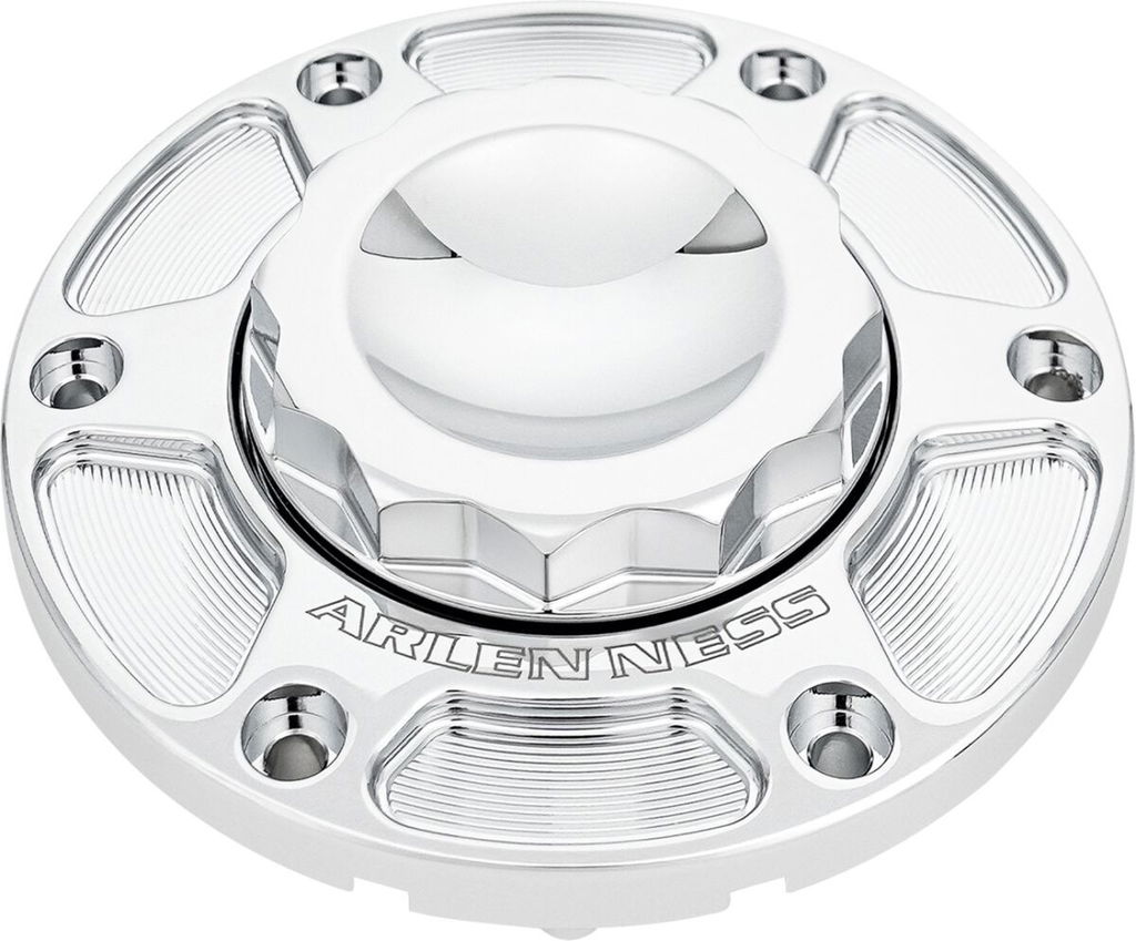 12 Point Gas CapIncludes CNC machined billet base and removable billet 12-point gas cap Top is CNC machined from solid billet aluminum Drastically easier to refuel gas tank. Factory gas caps open from one side only, resulting in limited fill angles and having to adjust handlebars when refueling Premium Viton® seals for long-term durability and resistance from high temperatures Utilizes factory venting system, for factory function with custom look