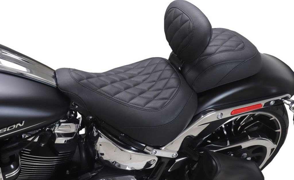 Wide Tripper™ Passenger SeatThis passenger seat can be used with or without the driver backrest (sold separately) Offers comfortable 2-up cruising with a spacious width that is 2-1/2" wider than stock in the passenger area Smooth vinyl cover with detailed stitching in highly durable synthetic glove-leather cover Mustang's proprietary controlled-density foam formula requires no breaking in and retains shape and support after years of use Marine-grade fiberlass baseplate for long-lasting support and durability, with polyurethane bumpers to absorb vibration High-quality expanded vinyl cover offers appearance of leather with durability to withstand the elements Handcrafted in USA