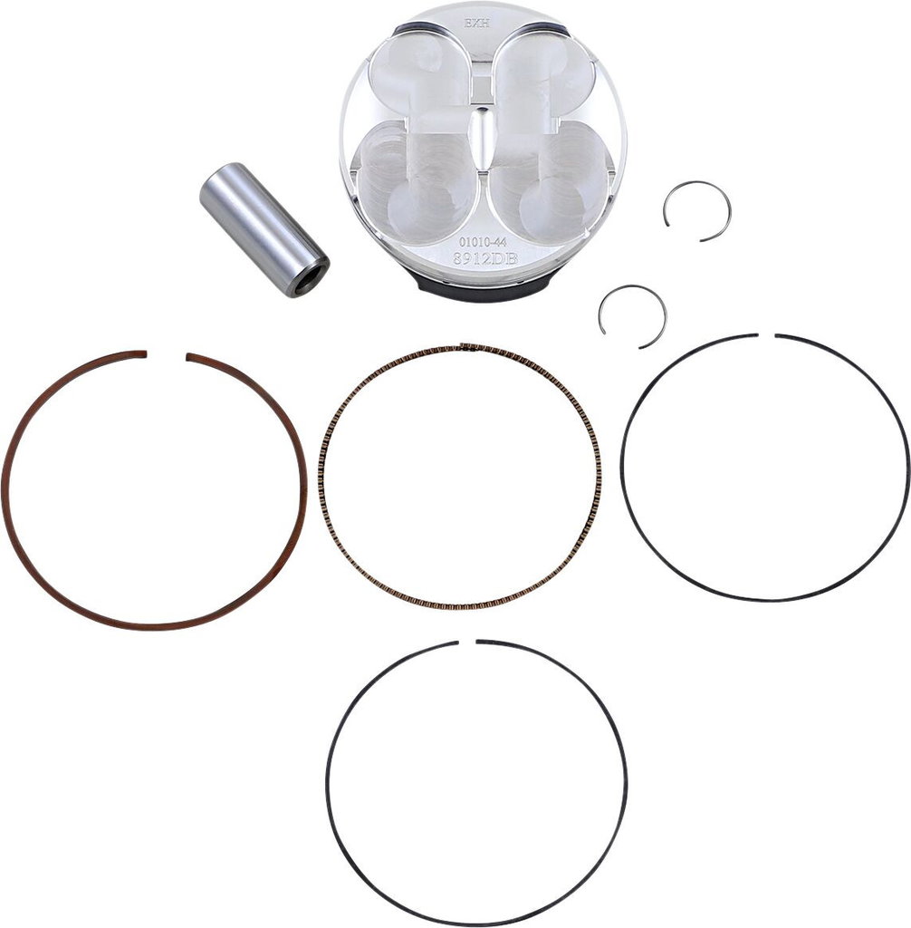 Piston Kit for 4 StrokeEnhanced piston pin oiling slots, radial boss machining, and annular grooves for improved wrist pin lubrication Lightweight piston with a tight piston wall clearance for a quieter running engine Skirt coated for reduced friction and improved break in performance Ring land treatment for improved ring seal and oil control Double bridged forging design where noted Kit includes piston, rings, wrist pin and pin locks Double bridge forging.