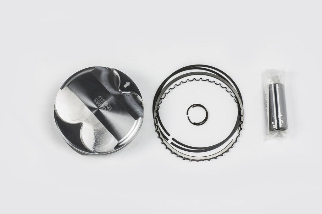4 Stroke Piston KitIn-house designed and manufactured; all forgings are produced in Wössner’s company-owned forging operation 4-stroke pistons are made using a double-bridged forging design Lightweight pistons with the tightest piston-wall clearances in the industry give you a quieter running engine Standard and oversize pistons for most models, with high compression ratios available for 4-stroke applications All piston skirts are supplied with a Moly coating to reduce friction and assist in break in All piston kits include piston, ring, wrist pin and pin locks Wössner piston kits are used by leading Supercross, Arenacross and MX GP teams