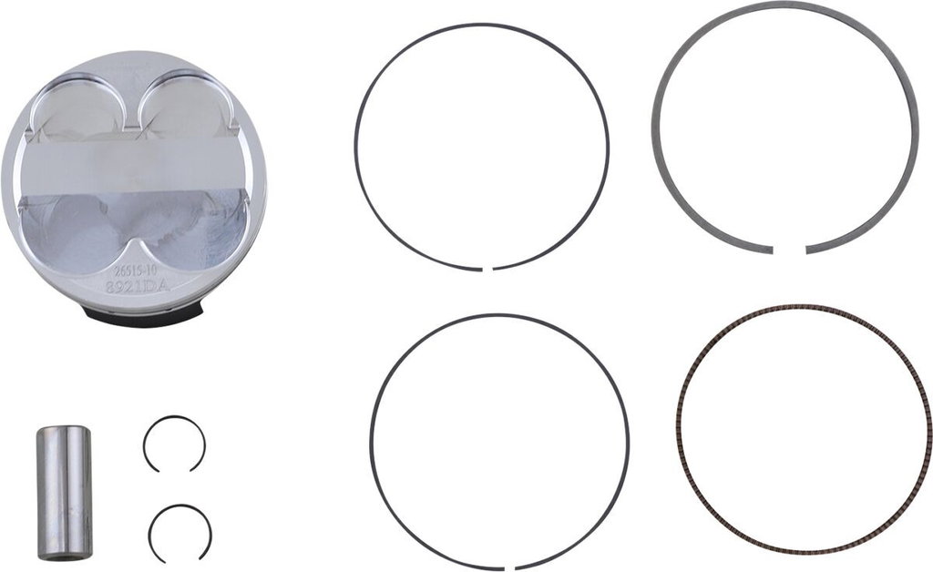 Piston Kit for 4 StrokeEnhanced piston pin oiling slots, radial boss machining, and annular grooves for improved wrist pin lubrication Lightweight piston with a tight piston wall clearance for a quieter running engine Skirt coated for reduced friction and improved break in performance Ring land treatment for improved ring seal and oil control Double bridged forging design where noted Kit includes piston, rings, wrist pin and pin locks Double bridge forging.