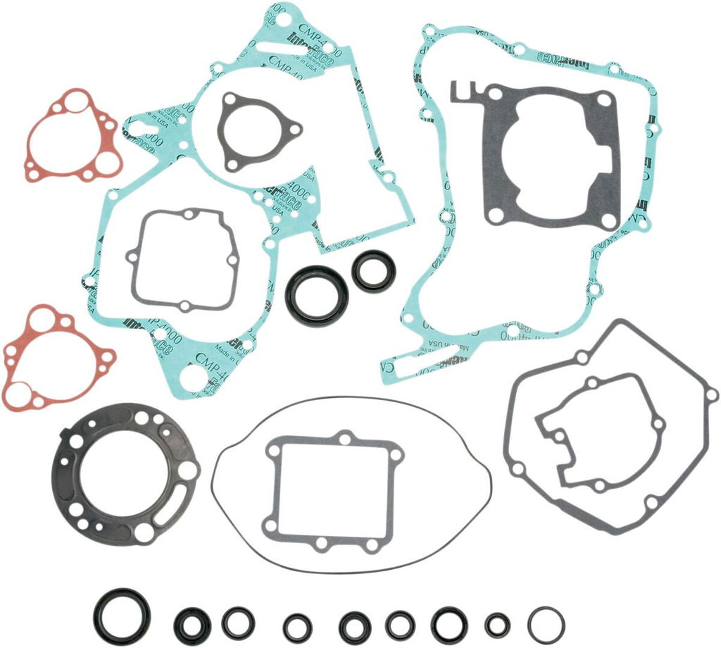 Complete Gasket and Oil Seal KitMoose can now handle all your gasket and seal needs at a fraction of OEM cost Rebuild the engine and transmission with total confidence as each set is designed for durability and accurate fit Oil seals are genuine OEM replacement seals Set includes all gaskets and oil seals necessary to rebuild the entire engine and transmission Valve seals also included Includes formed rubber valve cover gaskets All gaskets made in the USA Mechanical water pump seal are not included.