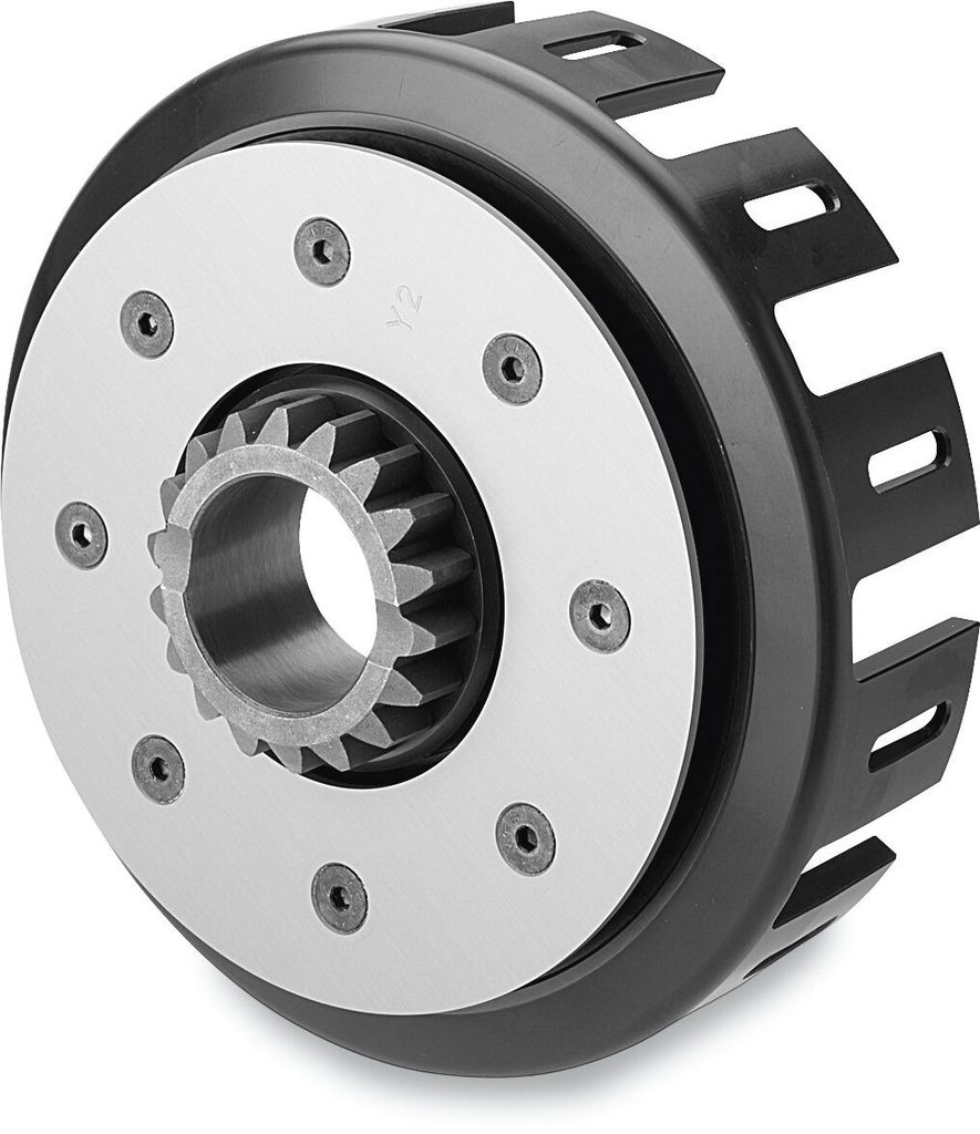 Billet Clutch BasketImprove clutch performance and heat dissipation Precision machined from billet T-6 aircraft quality aluminum Hard anodized for longer wear resistance than OEM design Advanced design allows clutch assembly to spin true, creating less heat when clutch is disengaged Superior tensile strength and hardness Baskets come with screws to mount the stock ring gear Steel plates, friction plates and springs sold separately Made in the U.S.A.