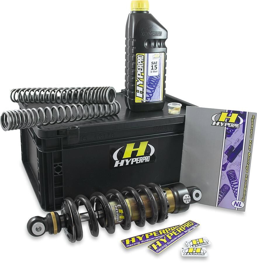 StreetboxShock features manual preload adjustment and rebound adjustment with 50 clicks. Hyperpro Streetbox! This streetbox contains a replacement progressive front fork spring kit set and an adjustable emulsion shock absorber. Springs and shock provide easier cornering, a shorter braking distance, improved tire life, give a better balance in the bike and better overall feedback of your bike. Shock is built with our modular system, so the shock is fully serviceable, and any part can be exchanged if needed. Streetbox is a perfect suspension solution to upgrade your bike!