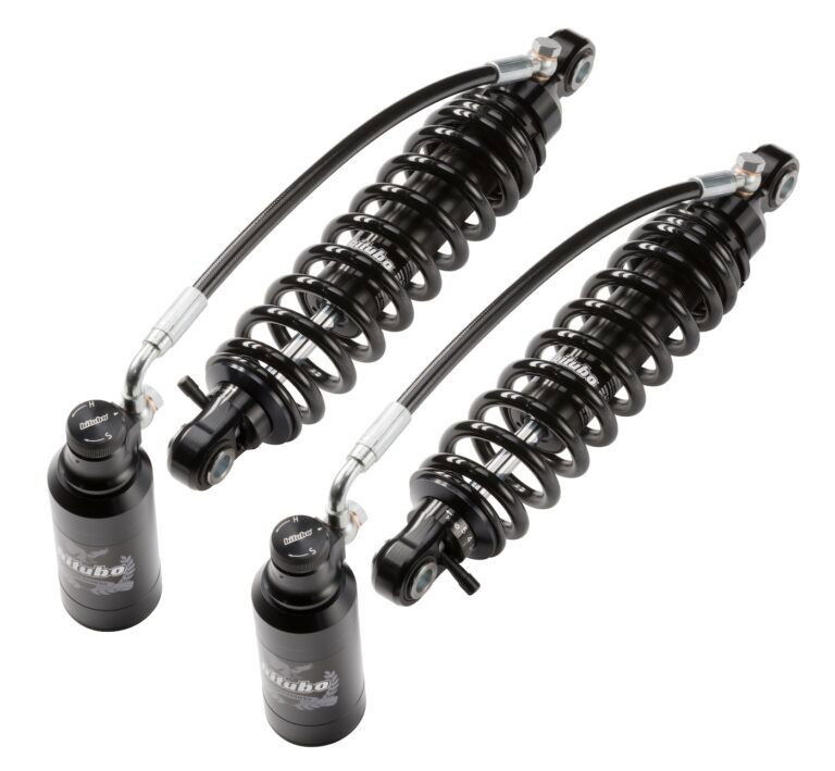 Rear Shocks HDEasily adjustable with an exposed remote reservoir featuring a 12 click compression knob, 5 position rebound adjustment lever and fine thread preload nut to help setup the ride for maximum performance Fully serviceable and rebuildable, including mounting brackets, preload adjustment tool and LONG-LIFE Warranty Black Finish Separated aluminum compensation chamber Gas pressurized (Nitrogen), with floating piston oil/gas separator Precision CNC machined billet aluminum alloy heads 5 position rebound and 12 clicks compression Spring preload: Fine Tune Thread Included items: (2) Shock assemblies Spacers included for docking kit equipped motorcycle Length: 12”/306mm, Total Stroke: 2.5"/64mm, Spring Rate: 2.5kg/mm