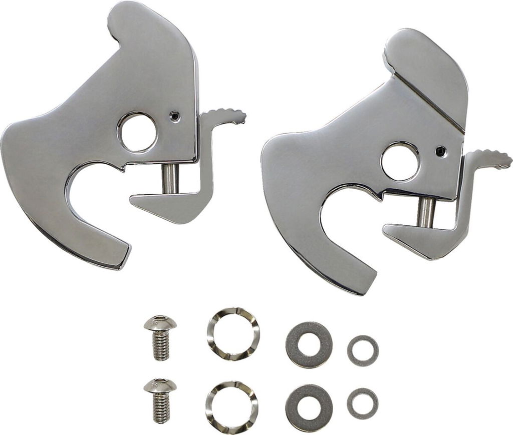 Detachable Latch KitFits all models equipped with detachable sideplates, one-piece sissy bar, racks and Tour Pak® luggage mounting racks (except 18-later Softail models with Holdfast racks and uprights) Upgrade for the satin black OEM latches used on detachables Easy to install with included hardware