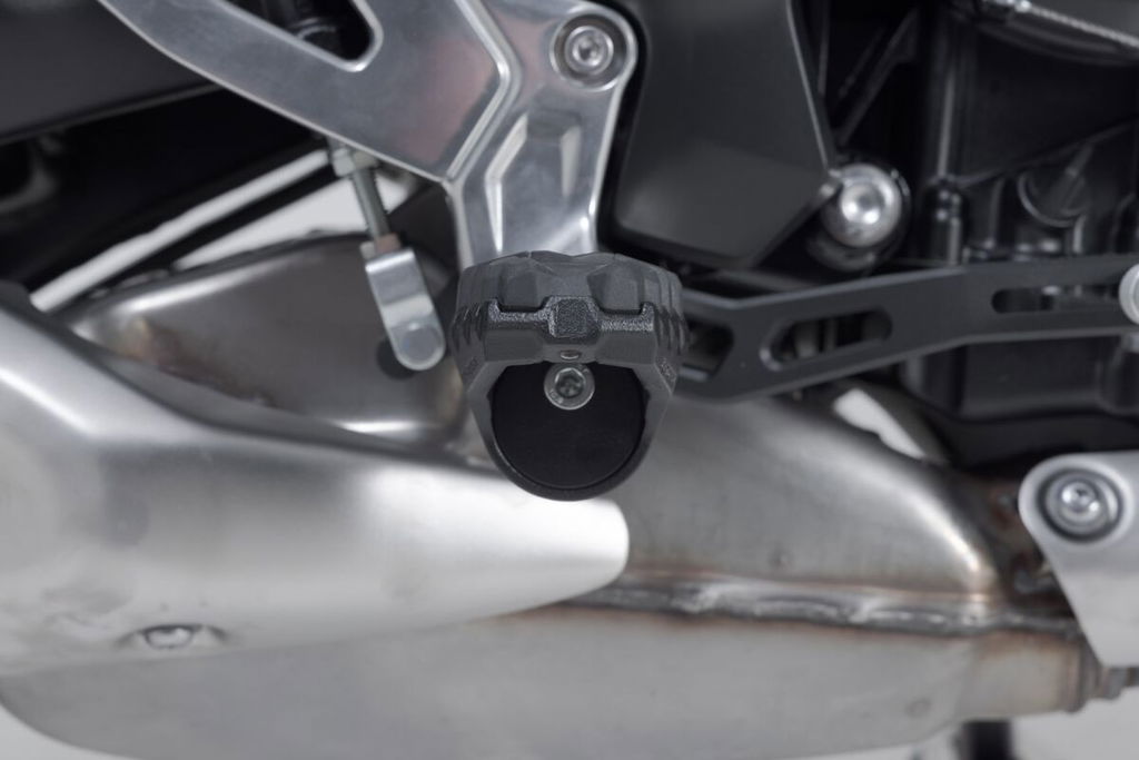Evo FootrestEasy mounting on original footrest mount 36 adjustment options: downward, forward, and back, as well as angle adjustment to the rotating interlocking elements Individual height adjustment (highest setting corresponds to original position, can be lowered by a max. 15 mm) Markings make it easier to adjust both sides symmetrically Profile with rounded edges protects boot soles and provides extra grip at the same time Removable, metal-reinforced rubber pad with non-slip surface frame and large contact surface (approx. 8 x 5 cm) for more comfort and grip Made from electropolished, corrosion-resistant cast stainless steel