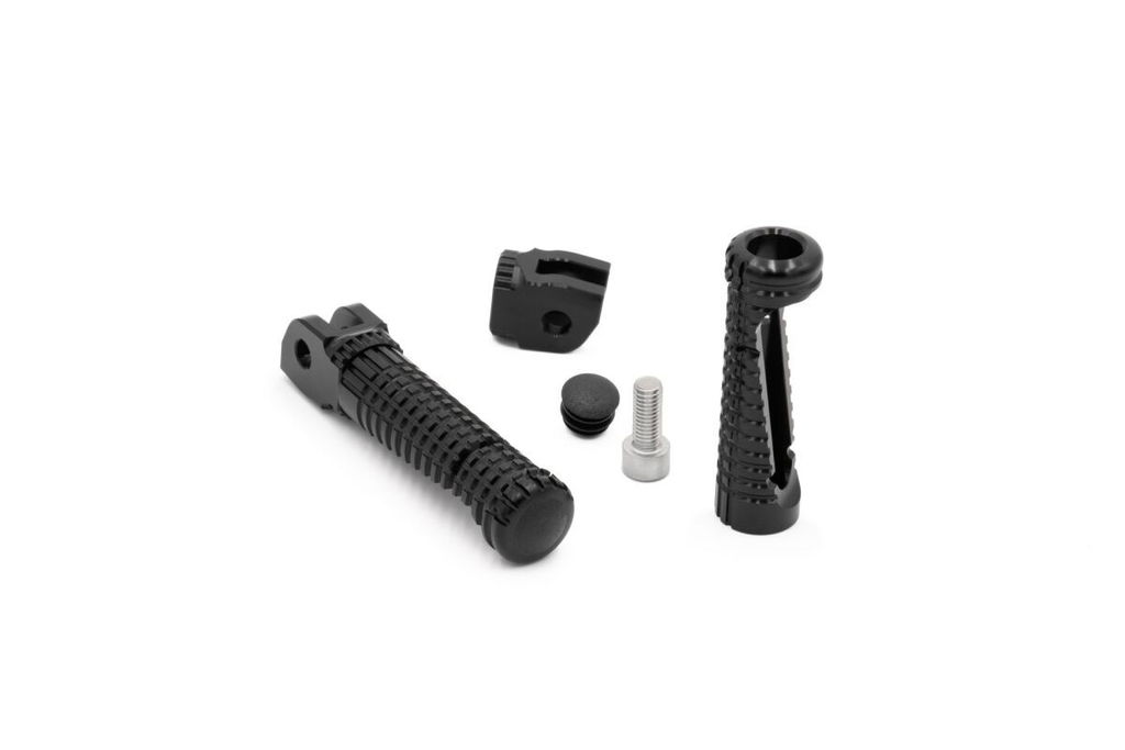 FootpegFor foldable turning joints Constructed from high-strength aluminum 80 mm length Feature three distinct styles: round, factory and fold able Round footpegs have a knurled finish and are available in silver, black or gold Factory style footpegs have machined grooves and are available in black
