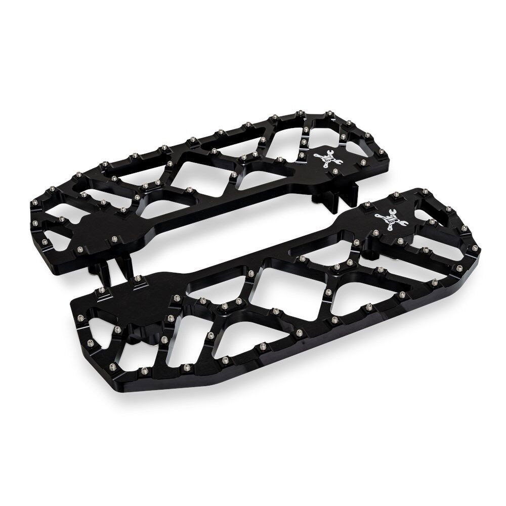 MX-Evolution FloorboardsThese square floorboards pay homage to the iconic motocross aesthetic of the 1970s, blended with a twist of modern ingenuity Crafted with precision CNC machining and lightweight, high-quality aluminum alloy for optimal performance Features laser engraved Burly Brand logo for a distinctive look Set screws provide secure traction for various riding styles