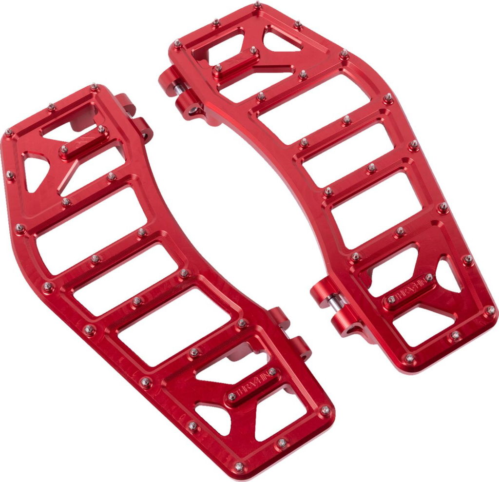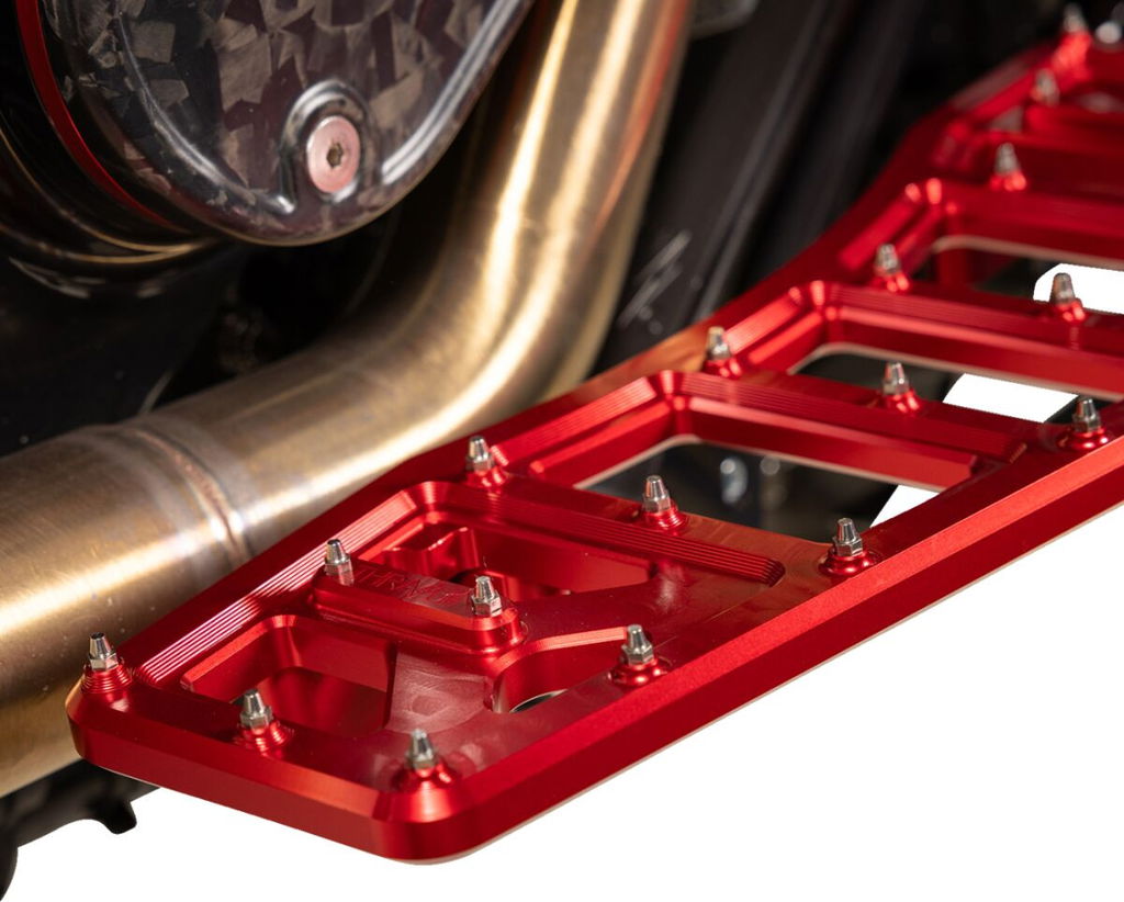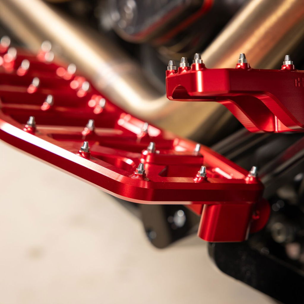 Aggressor FloorboardsDesigned to provide the maximum amount of grip and improve ground clearance while maintaining a sleek and timeless design Featuring 24 cone-shaped stainless steel cleats per floorboard Large, foot-shaped platform looks great and improves the feel Made with billet 6061 aircraft grade aluminum Cone-shaped stainless steel cleats are replaceable Cleats improve grip Thin platform for increased ground clearance 2024 and newer CVO ST Front Floorboard Mounts will need to be changed to HD Part # 472003-02A.