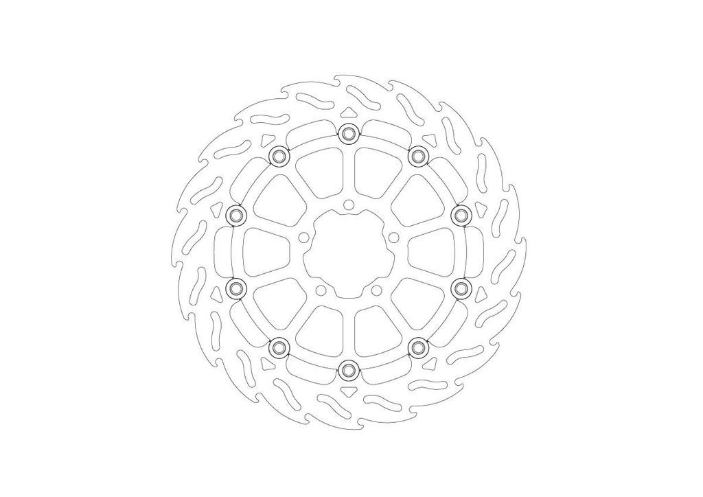 Flame Series RotorBolt-on performance upgrade Flame design ensures optimal heat dissipation and a perfect cleaning of the brake pad surface Durable, premium quality stainless steel outer ring, mounted with lightweight stainless floaters Precision double-ground for excellent rider feedback, eliminating any pulsation at the lever Equal brake pad contact throughout entire rotation of disc ensures linear braking action CNC-machined 6082 billet aluminum, black anodized carrier is lightweight and strong Can be used with any type of brake pad Also available in a 5,5 mm professional racing version Brake Rotor Floating Flame Front, KTM