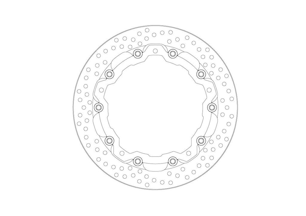 Halo Series Floating Racing RotorA new standard in aftermarket circular-round brake rotors Durable, premium quality stainless steel outer ring is laser-cut and precision-ground Carrier is crafted from CNC-machined billet aircraft aluminum, black anodized and laser marked Venting holes are sized and positioned exactly to ensure equal heat dispersion, even under high thermal stress, while the brake pad contact surface stays clean Lightweight stainless steel floaters complete the package Brake Rotor Floating Racing Halo, Front, Outside diameter 320mm, Inner diameter 204mm, Pitch 220mm