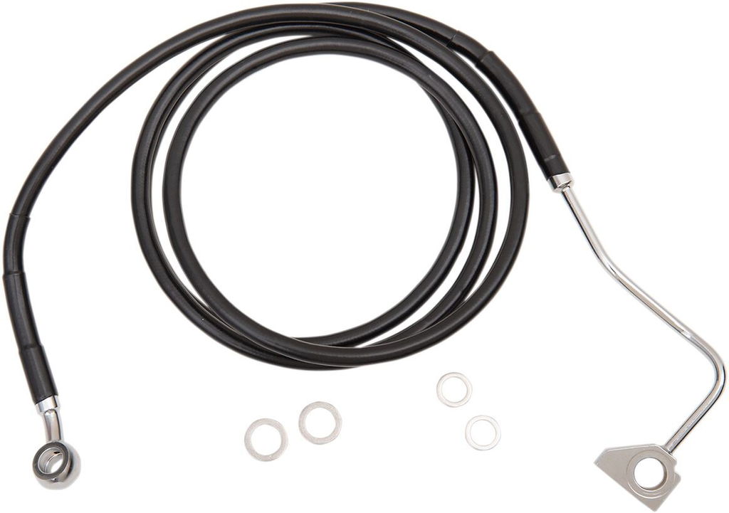 Extended Length Black Vinyl Brake Line KitFeatures black vinyl-coated braided extended lines with chrome steel fittings Made in the U.S.A. All measurements are approximate.