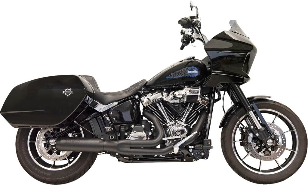 2-into-1 Exhaust System with Superbike MufflerFeatures stepped 1-3/4” into 1-7/8” equal length headpipes in mild steel with industrial chrome that merge into our advance collector Mild steel heat shields coated black cover the headpipes and our advanced collector 4” Straight stainless muffler housing with perforated baffle, welded on logo badging and matching black end cap 18 mm O2 Bungs with supplied 12 mm adaptors Removable baffle and end cap In order for this exhaust system to fit the '25 Lowrider ST the bracket #1861-1836 is required.