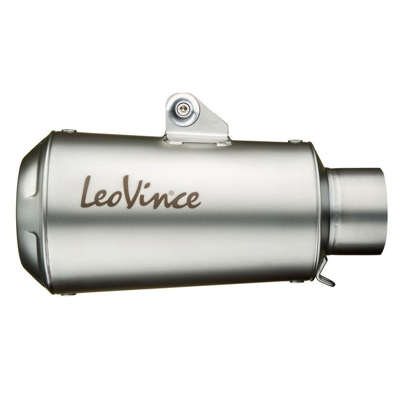 LV-10 Stainless Steel Slip-On MufflerLV-10 STAINLESS STEEL (Racing DNA) SLIP-ON MUFFLER We conceived the LV-10 through the experience of collaborating with the best teams in the World Championships. We have brought lightness and performance to the road, to allow you to experience the true race feeling of the track. The LV-10 is built in AISI 304 stainless steel for long-lasting performance. We chose this material because durability and corrosion resistance are fundamental characteristics to guaranteeing the race feeling you are looking for over time. With the laser-etched LV logo we enhance the exclusivity of your exhaust and with the shot-blasted matte finishing, you also get the unmistakable LeoVince titanium look. AISI 304 stainless steel Shot blasted end cap Matte finishing Rear stainless steel mesh Laser etched LeoVince logo Laser cut bracket High temperature resistant "LV" sticker included in the box