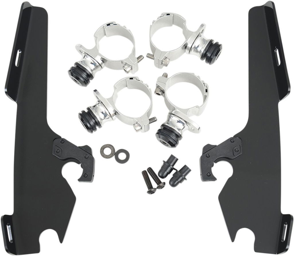Fats/Slim Windshield Trigger-Lock Complete Mount KitAngle Adjustable Model specific no-hassle installation, then on-off without tools A pair of glass-filled nylon latches lock it down until the spring loaded "Trigger-Locks" are intentionally disengaged Made exclusively of electrocoated aluminum and stainless steel, with stainless steel fasteners Anchoring hardware is the same for all windshields and fairings for each bike Made in the U.S.A.