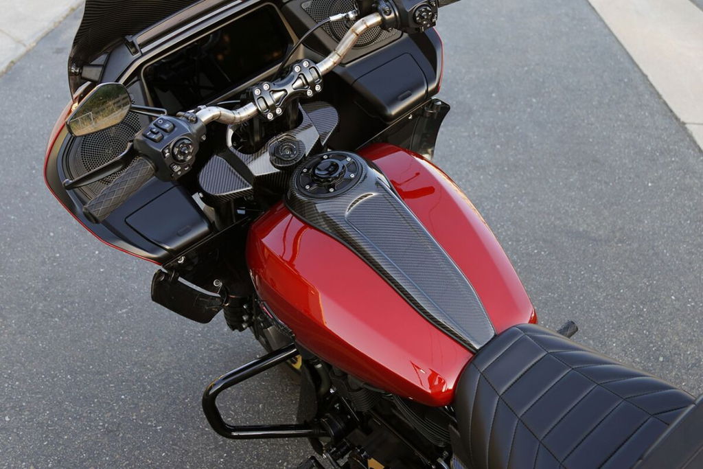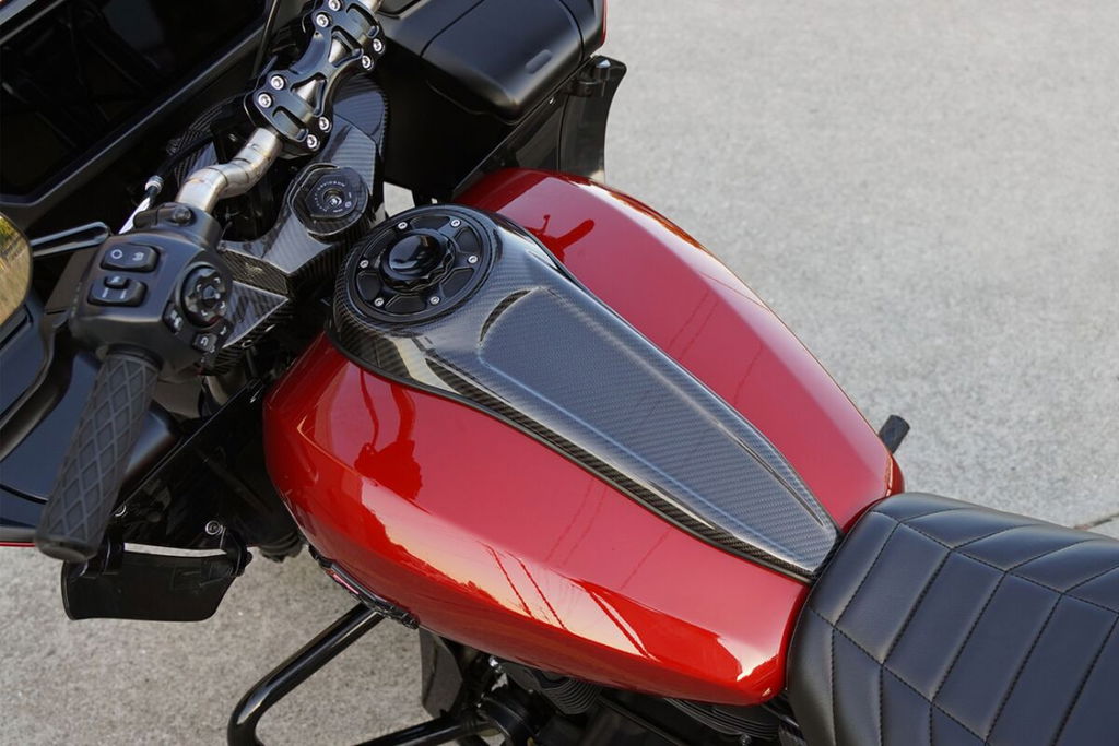 Tank Dash PanelCarbon fiber custom tank dash for touring models Made from premium grade pre-preg carbon fiber Features a smooth flowing design for a clean custom look Finished in a high-gloss, UV-resistant clearcoat for long-term durability Direct bolt-on installation, accepts factory gas cap assembly and gasket