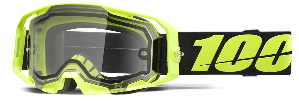 • Enduro goggles equipped with dual pane lens with 100% branding on the silicone-lined adjustable head strap.