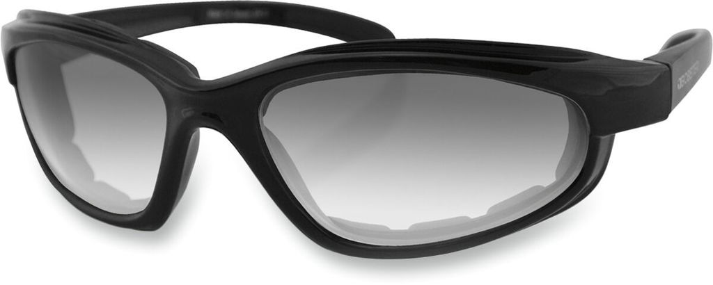 Fat Boy SunglassesWearable in any light conditions; feature VLT rate of 87%-47% Anti-fog, anti-scratch polycarbonate lenses provide 100% UVA/UVB protection Closed-cell memory foam seals out wind and debris, and molds to face Microfiber carrying pouch doubles as a cleaning cloth Accepts prescription lenses (not included) Lenses: Polycarbonate. Frame: Polycarbonate