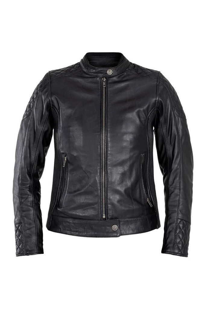 Women's Adina Leather JacketThe John Doe Adina leather jacket is a masterpiece of style, comfort and safety on the motorcycle. With its tailored fit and stretch panels that cinch the sides of the jacket, this jacket offers unparalleled comfort. The classic diamond stitching, which extends from the shoulders to the upper back, emphasizes the timeless look and quality of this leather jacket. Each stitch is precisely placed to ensure perfect symmetry and a luxurious feel that characterizes the John Doe Adina leather jacket. Discover the John Doe Adina leather jacket today and experience the perfect combination of elegance and functionality for your motorized adventures. Water and wind block function. Preformed long sleeves with adjustable width. Inside pocket on the left. YKK zipper/semi-automatic YKK zipper. Protection classification AA. XTM® Protector-ready (multi-position system). Integrated shoulder, elbow and back protector pockets. Level 1 shoulder and elbow protectors included, upgradeable to Level 2 (part number: 27040752, sold separately). Optional back protector Level 1 (part number: 27020317) and Level 2 (part number: 27020318)(both sold separately). Shell 1:100% Cowhide leather. Shell 2: 100% Polyester. EN17092-3:2020 – AA Class