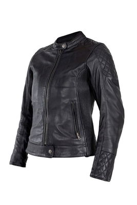 Women's Adina Leather JacketThe John Doe Adina leather jacket is a masterpiece of style, comfort and safety on the motorcycle. With its tailored fit and stretch panels that cinch the sides of the jacket, this jacket offers unparalleled comfort. The classic diamond stitching, which extends from the shoulders to the upper back, emphasizes the timeless look and quality of this leather jacket. Each stitch is precisely placed to ensure perfect symmetry and a luxurious feel that characterizes the John Doe Adina leather jacket. Discover the John Doe Adina leather jacket today and experience the perfect combination of elegance and functionality for your motorized adventures. Water and wind block function. Preformed long sleeves with adjustable width. Inside pocket on the left. YKK zipper/semi-automatic YKK zipper. Protection classification AA. XTM® Protector-ready (multi-position system). Integrated shoulder, elbow and back protector pockets. Level 1 shoulder and elbow protectors included, upgradeable to Level 2 (part number: 27040752, sold separately). Optional back protector Level 1 (part number: 27020317) and Level 2 (part number: 27020318)(both sold separately). Shell 1:100% Cowhide leather. Shell 2: 100% Polyester. EN17092-3:2020 – AA Class