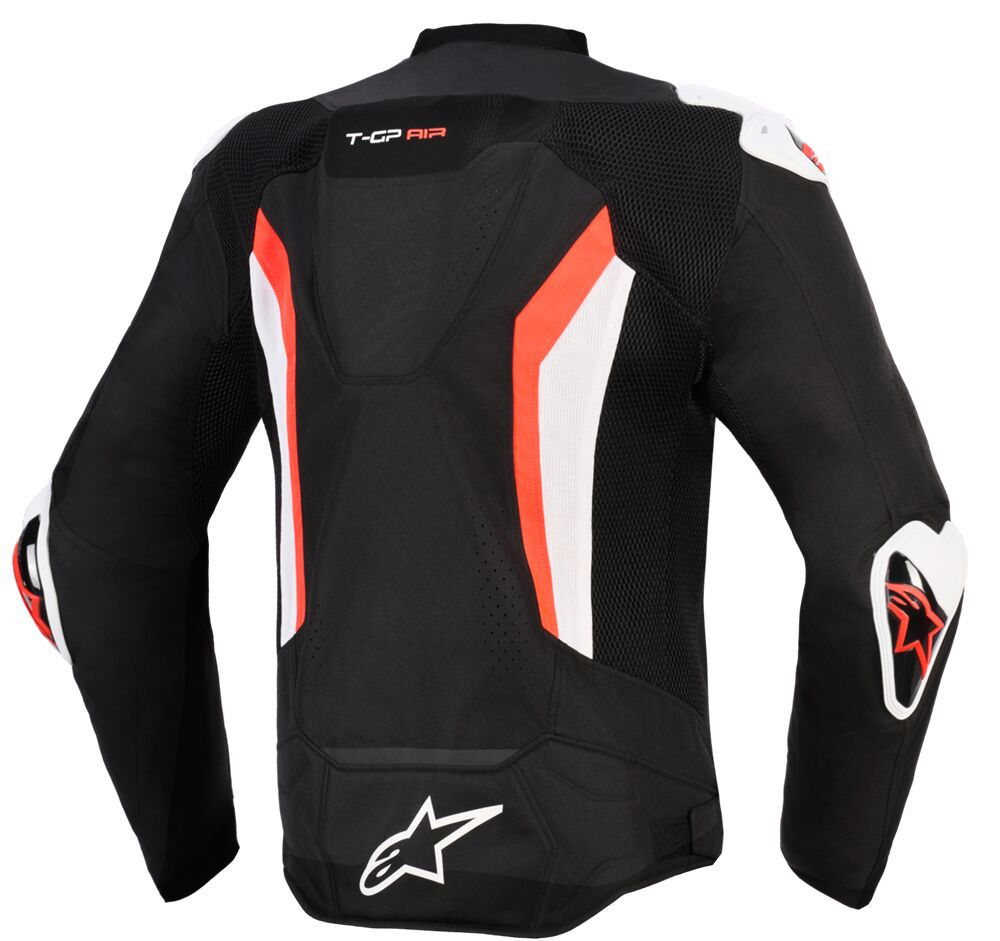 T-GP Air JacketAerodynamic, Alpinestars ‘Race-spec’ Supertech R10 aero hump, designed and engineered to work in conjunction with Alpinestars S-R10 Helmet for optimal streamlining and aerodynamic racing performance Dual density, racing-derived integrated Racing GP DFS (Dynamic Friction Shield) on the shoulders and elbows for superior friction control Sport fit with an elongated rear for better coverage and enhanced wind protection in the riding position Laser perforated panels, with 2D and 3D mesh panels for superior airflow and ventilation. Hidden, race-derived auto lock zip on wrists ensures a secure. precise fit while preventing accidental opening, and is optimized for use with Alpinestars gloves Multi-panel 450D polyfabric construction for strength, comfort and superior abrasion resistance Large technical open mesh panels for cooling airflow Strategically positioned accordion stretch panel inserts have been designed to accommodate Alpinestars Airbag System, allowing expansion when the airbag inflates but also offering a high level of anatomical performance and a superior fit when riding without the system fitted Hook-and-loop neck closure with the large MotoGP inspired tab for a secure closure Pre-curved elbow construction for reduced rider fatigue when riding Soft touch synthetic suede collar and cuffs for superior rider comfort Integrated waist adjustment flaps for an optimized performance fit Pockets inside and outside the jacket for enhanced real-world practicality Tech-Air® 7x, Tech-Air® 5 PLASMA and Tech-Air® 3 ready 100% Polyester Inner/Lining: 100% Polyester