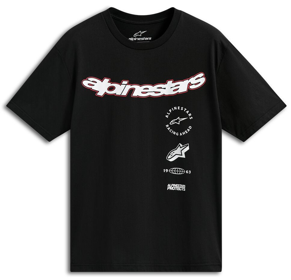 • Alpinestars curved logo with multi stacked logos.