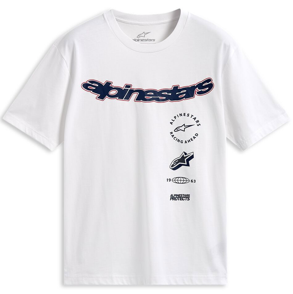 • Alpinestars curved logo with multi stacked logos.