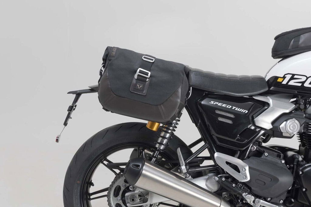 Legend Gear LC2 Side Bag System Brown EditionOur bike-specific side bag sets are adapted for tail shape and exhaust height and demonstrate the best combination of the Legend Gear Side Bags. The side bags combine classic appearance and contemporary handling. These bags are easy to attach and detach on the SLC side bag carrier using a quick lock system. SLC Carrier Left & Right Side: Side carrier adapts perfectly to your motorcycle's look. Bike-specific development ensures the best fit. The adapter kit is included in delivery. Material: Steel. Surface: powder coated. Colour: black. Total Weight: appr. 1,1 kg / appr. 2.4 lb (each one). Legend Gear Side Bag LC2 Right & Left: For clicking onto the left and right SLC side carrier. Quick release attachment made from fiberglass-reinforced polyamide enables attachment and removal of the Legend Gear LC side bag within seconds. Rain protection thanks to the roll closure, water-resistant material and waterproof inner bag. Numerous loops for individual attachment of the Legend Gear LA1 and LA2 accessory bags (sold separately, parts 35120273 & 35120274) and the Legend Gear LA3 smartphone pouch (sold separately, part number 35120319). Straps for attaching the Legend Gear LA4 shoulder strap (sold separately, part number 39200466). Light weight with attractive design. Material: Napalon synthetic leather and waxed canvas with water-repellent PU coating. Waterproof inner bag made of 210D Polyamide & double PU coating. Surface: waxed. To protect the natural fibres from the influences of weather, we recommend treating the cotton fabric surface of the product with a commercially available wax waterproofing at regular intervals or after intensive cleaning. Colour: Brown/Black. Size: 31,0 x 14,0 x 35,0 cm / 12.2 x 5.5 x 13.8 in. Total Weight: appr. 1,1 kg / appr. 2.4 lb (each bag). Total Volume: 13,5 Liters (each bag). Scope of delivery: 1 x Legend Gear Side bag LC2 right, 1 x Legend Gear Side bag LC2 left, 2 x Waterproof inner bags, 1 x SLC Side carrier left, 1 x SLC Side carrier right side, Mounting instructions & Mounting material.