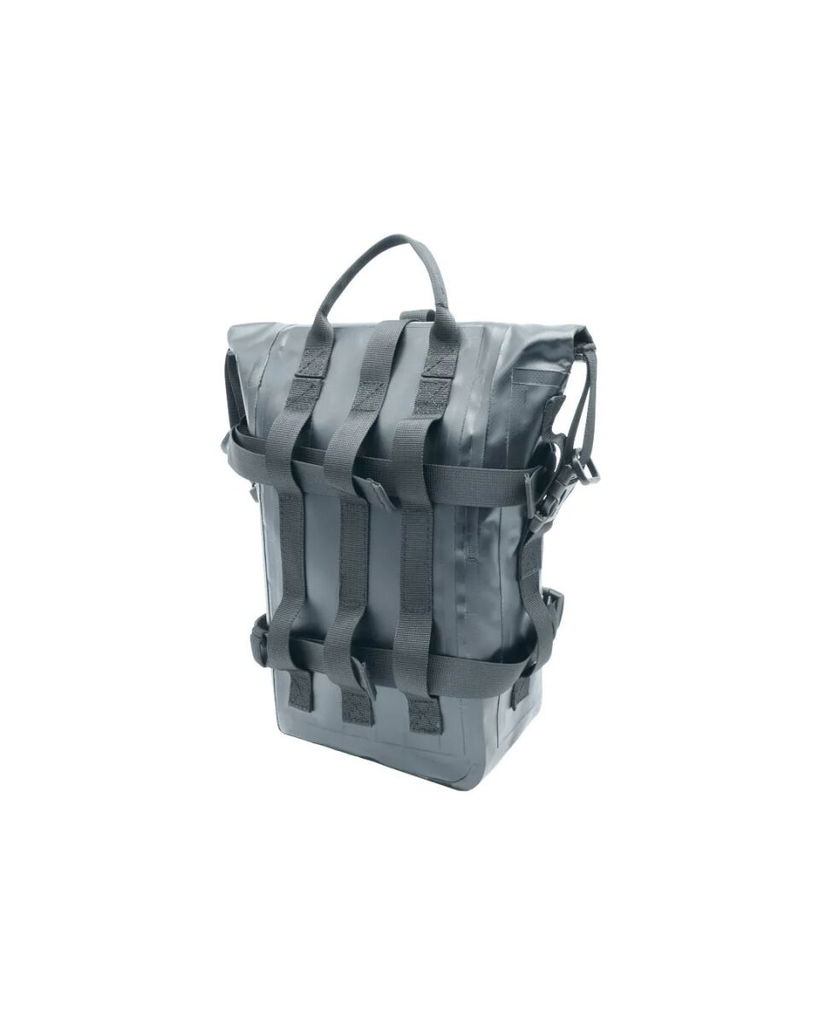 Dry Excursion Engine Guard Bag (8 Liters)Dry Excursion 8 is the perfect engine guard bag for motorcyclists looking for a safe and versatile solution for transporting their belongings while travelling. Completely waterproof and universal, this bag offers total protection against the elements thanks to its high-frequency welded seams, which ensure strength and watertightness in all conditions. The strap fastening system and multiple hooks allow the bag to be easily adapted to any engine guard, while the laminated reflective inserts increase night-time visibility, ensuring greater safety in low light conditions. The adjustable roll-top closure, accompanied by a front buckle, offers additional protection against water and dust ingress. Inside, a large compartment allows you to conveniently store everything you need, while the carry handle and adjustable shoulder strap allow for easy transport. Dimensions: 21 cm x 44 cm x 9 cm. Capacity: 8 Liters. 100% Polyester.