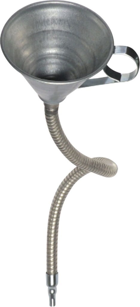 Flexible Spout FunnelFeatures a removable stainless steel filter net that can effectively filter impurities 60 cm flexible spout is great for filling holes that are hard to reach Built-in handle gives a firm grip during operation Aluminum funnel for fluid and oil change