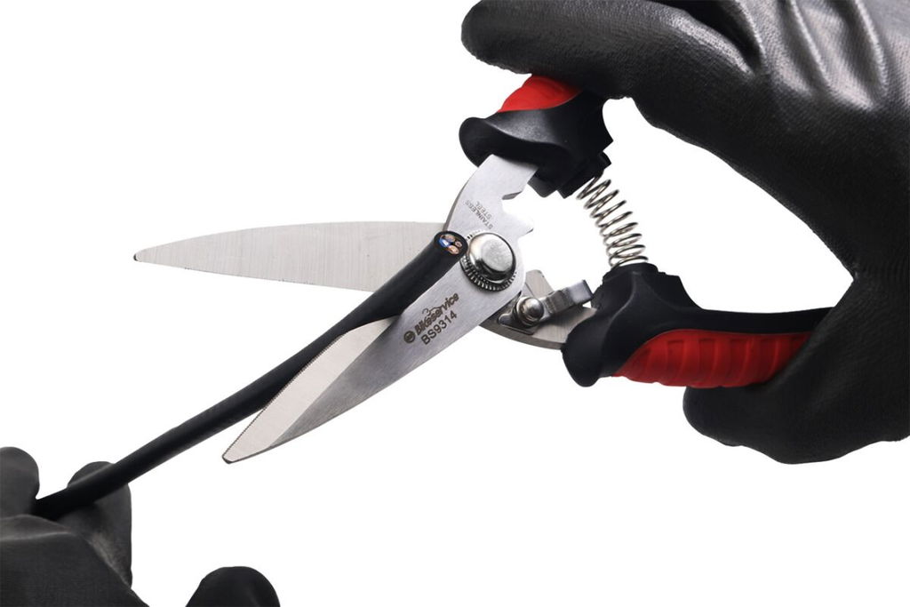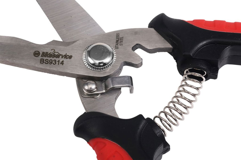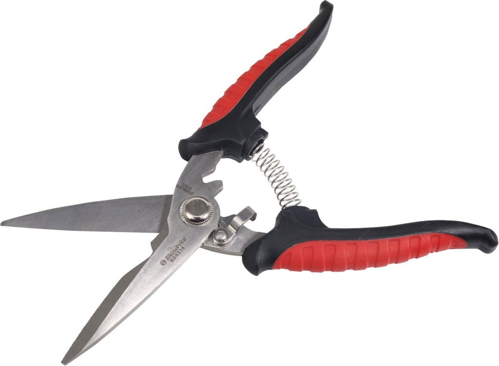 Multi-Purpose ScissorsSuitable for cutting hose, electrical wire, and cable, thin metal sheets, and also can be used for gardening pruning shears Made of high-quality stainless steel and is designed for maximum leverage with minimum effort One of the blades has a cutting notch which makes cutting the wire easy Self-opening, spring-loaded mechanism with safety lock Overall length: 8"