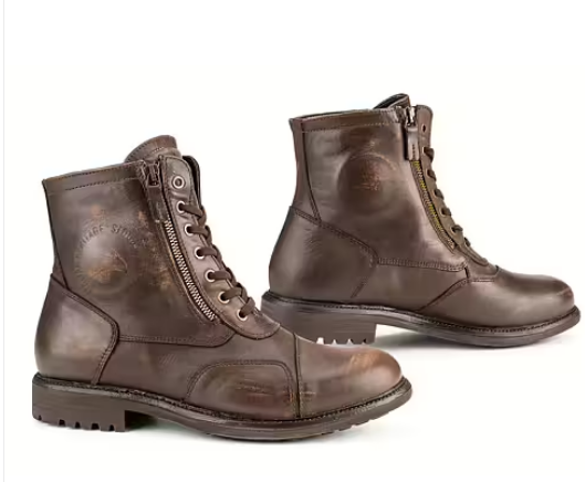 Tuff retrosko • CE-godkänd enligt EN-13634 • Full grain läder som oljebehandlad och getts ett slitet utseende • "High-Tex" -membran gör stövlarna helt vattentäta • ”D3O”-skydd för fotknölarna • Förstärkt tå och häl • ”ACF/men” anatomiskt utformad enligt de senaste rönen • Snörning och dubbla dragkedja • Slitstark sula med bra grepp Färg: Brun, svart Storlek: 39 – 47