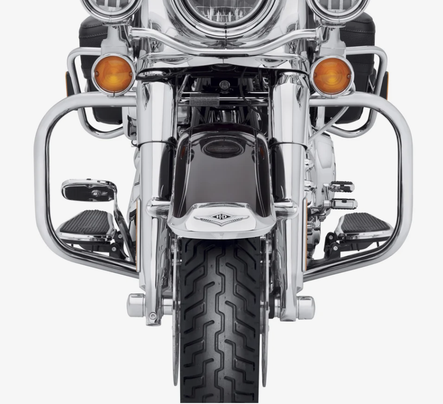 Protect your bike without sacrificing ground clearance or style. Designed to complement the lines of the motorcycleBright chrome finish adds the perfect finishing touchAccepts Engine Guard Mount FootpegsFLHXXX and FLRT models require separate purchase of Steering Damper Bracket, P/N 83865-09