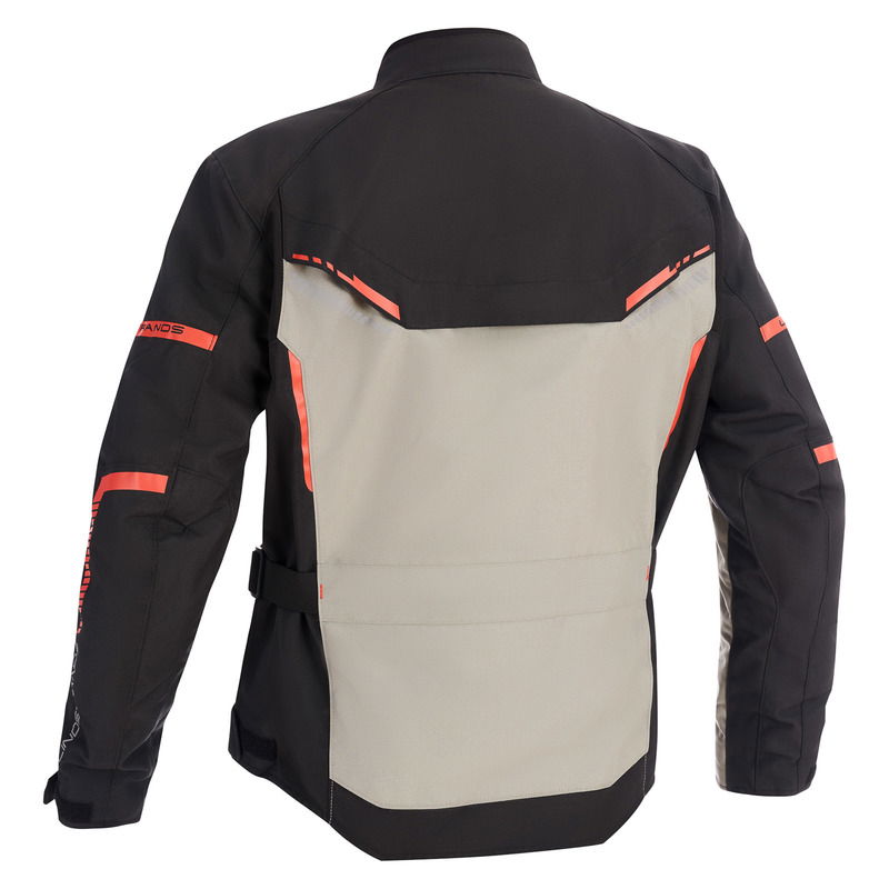 Vattentät touring jacka i textil med många tekniska egenskaper som avtagbar termofodrad väst, Dryway-membran som drop-liner, ventilationsöppningar på bröst och rygg.